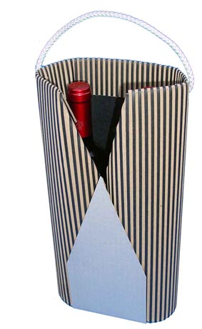 für eine Bordeauxflasche. Höhe 305 mm. 2-teilige Stanzverpackung aus Klettkarton