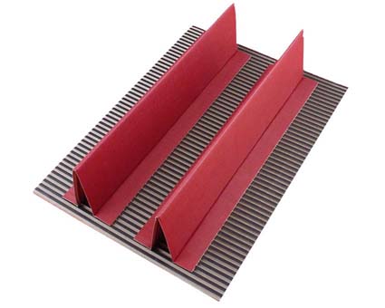Einteilige Einlage aus colorierter Wellpappe in verschiedenen Farben