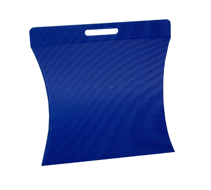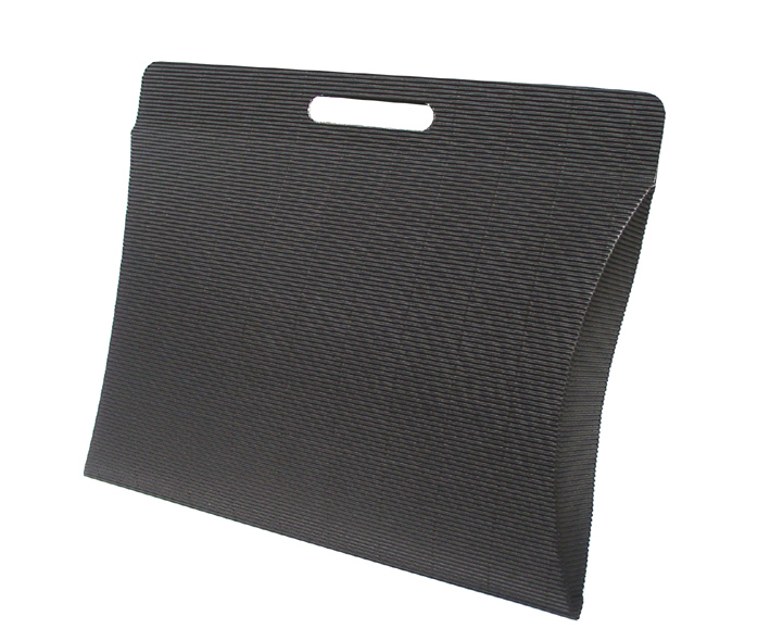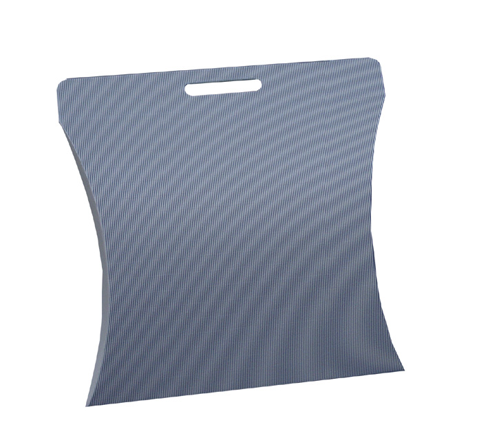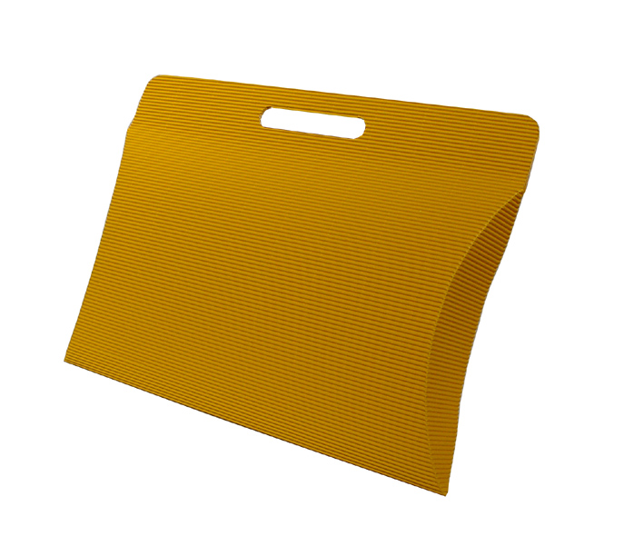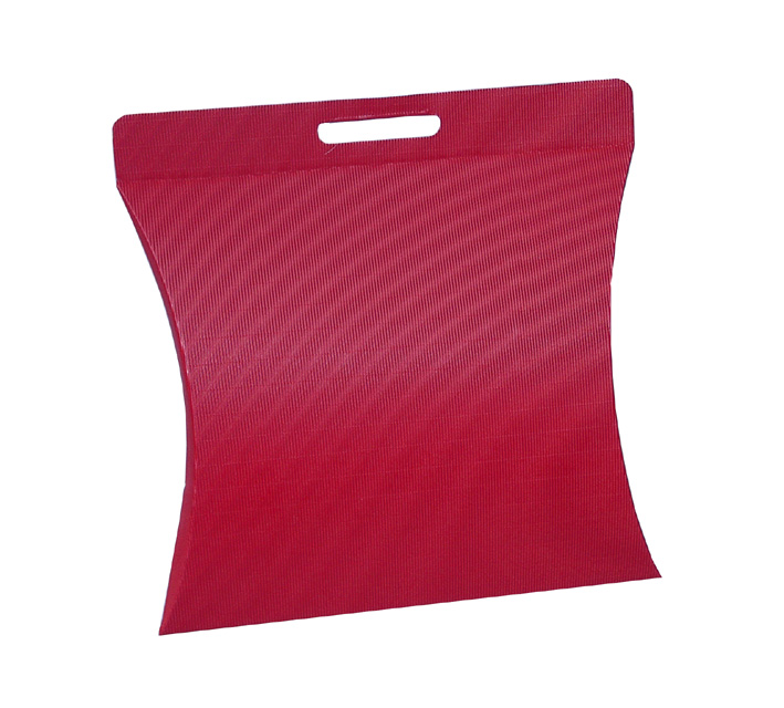 Stanzverpackung mit Tragegriff aus offener Wellpappe.