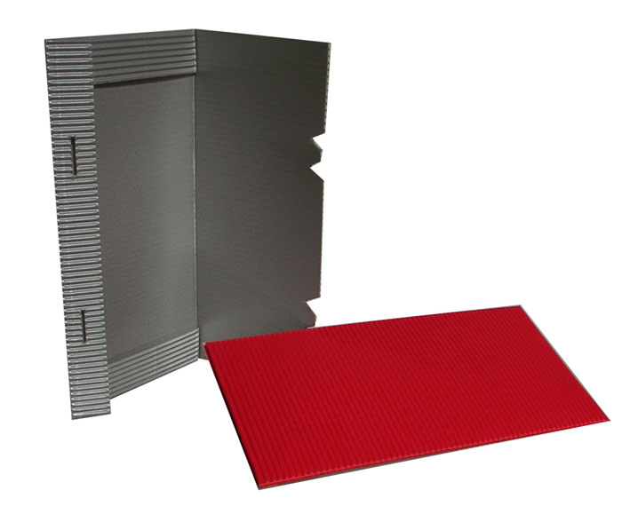 2-teilige Stanzverpackung aus offener Wellpappe, innen weiß.