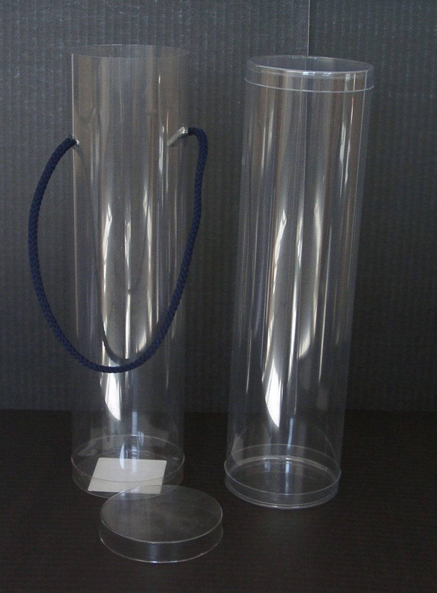 Klarsichtröhre aus PVC, 2 x gebördelt, Boden eingeklebt.
